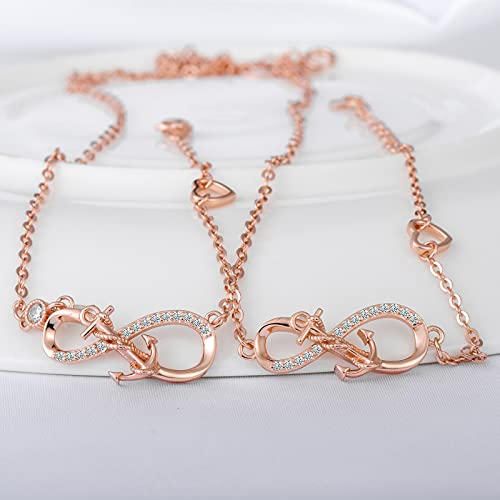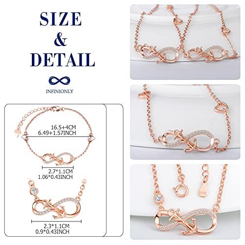INFINIONLY Parure di gioielli, Collana Bracciale da donna ragazza, Collana Bracciale in argento 925, bracciale collana ciondolo con simbolo dell'infinito e ancora, zircone intarsiato, oro rosa