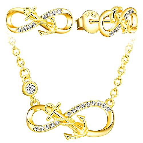 INFINIONLY Parure di gioielli, Collana Orecchini da donna ragazza, orecchini collana in argento 925, orecchini collana ciondolo con simbolo dell'infinito e ancora, zircone intarsiato, oro