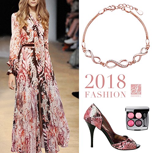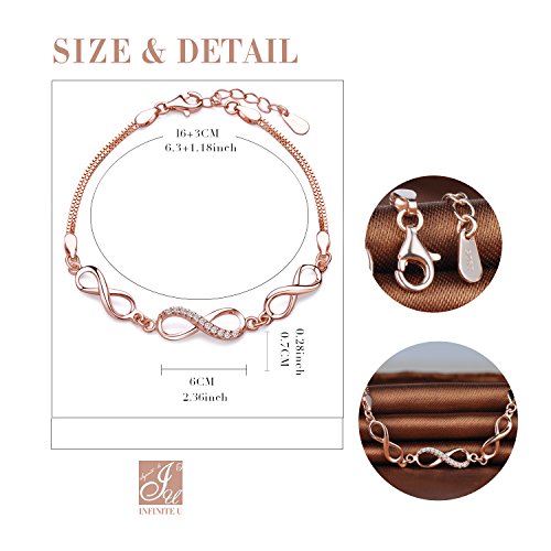 Infinite U, braccialetto classico da donna con charm del simbolo dell'infinito, in argento Sterling 925, catena regolabile in zirconia cubica, color oro rosa., Argento, colore: Rose Gold, cod. b01884