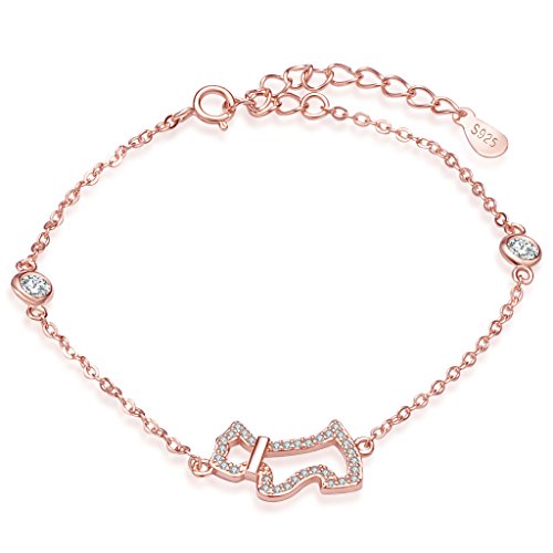 Infinite U - Braccialetto da donna con ciondolo a forma di cucciolo di cane, in argento Sterling 925 con zirconia cubica, catena regolabile, oro rosa