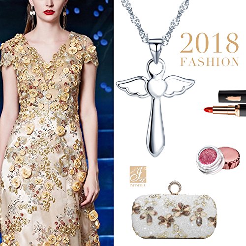 Infinite U - Collana da donna in argento Sterling 925 con ciondolo a forma di croce e crocifisso, con catenina da 45 cm (con sacchetto regalo)