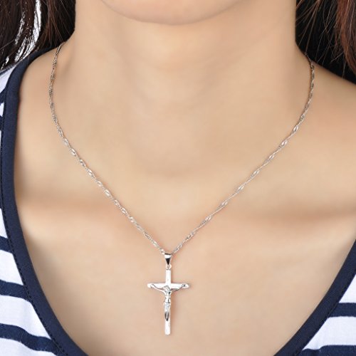 Infinite U, collana con esclusivo ciondolo a forma di crocifisso, in argento Sterling 925, da uomo e da donna, ciondolo per coppia, pendente, croce, crocifissione, Gesù e argento, colore: Silver-Couple, cod. N1610-couple