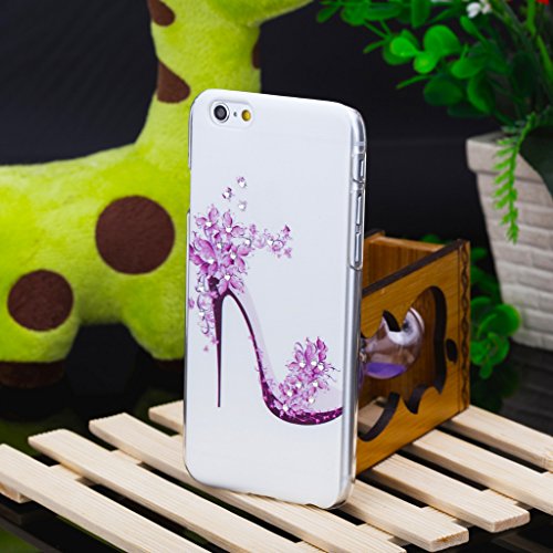 Infinite U - Cover per iPhone 6, da donna, motivo con scarpa con tacco alto / fiore / farfalla, con strass in 3D, colore: rosa, dimensioni: 12 cm