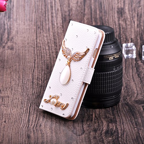Infinite U - Custodia per iPhone 6 e 6s da 4.7”, da donna, con strass, con tasca portafoglio/porta tessere, motivo di ali d'angelo retrò e gocce d'acqua