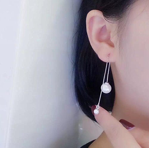 Infinite U elegante 925 in argento Sterling con doppia goccia di perle Threader Durchzieher catena box orecchini per donna/ragazza, colore: Argento