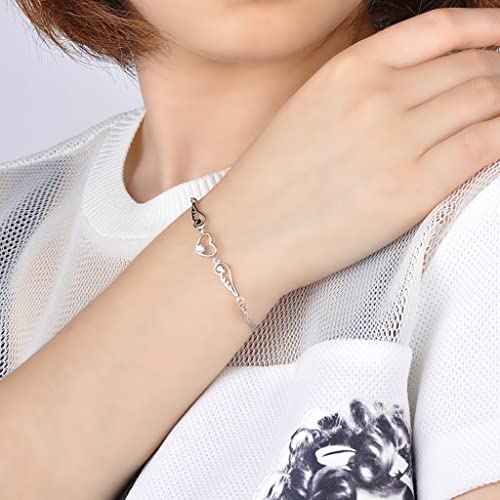 Infinite U Fashion - Braccialetto da donna con ciondolo a forma di ali d'angelo, in argento Sterling 925 con zirconia cubica, regolabile, argento