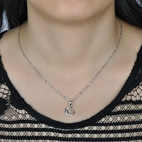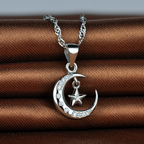 Infinite U Fashion - Collana con ciondolo a forma di stella a mezzaluna in argento Sterling 925 con zirconi cubici, per donne e ragazze, argento