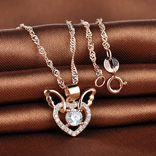 Infinite U Fashion collana da donna con rose, ali d'angelo dorate, cuore in argento Sterling 925, con zircone cubico, lunghezza: 45 cm