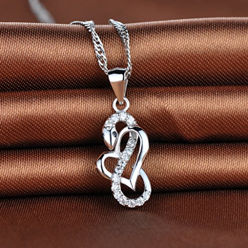 Infinite U infinity simbolo serpente collana con ciondolo a forma di cuore in argento Sterling 925 con zirconia cubica, donna