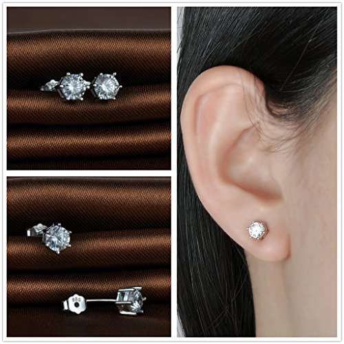 Infinite U - 4 paia di orecchini a perno con zirconi da 3-6 mm incastonati a 6 griffe, in argento Sterling 925, per donna o ragazza