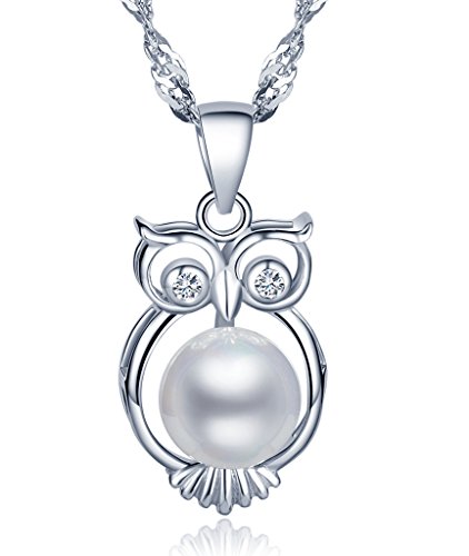 Infinite U - Pendente a forma di gufo, con perla coltivata in acqua dolce da 8 mm, per donna, con catena da 45 cm