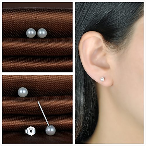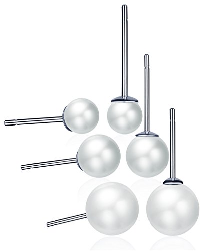 Infinite U 6pcs 925 sterling Silver 4 - 9 mm Set orecchini di perle bianche orecchini Earbob per donna/ragazza, 3 paia
