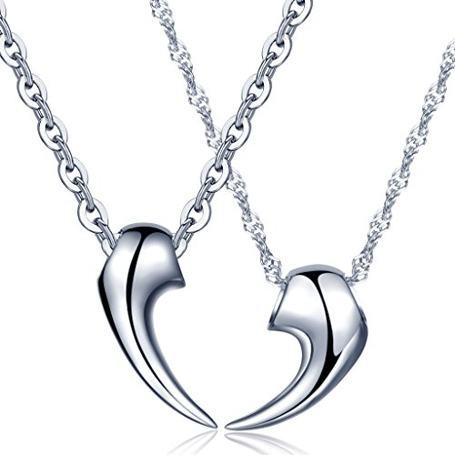 Infinite U Unique - Ciondolo a forma di mezza cuore, in argento Sterling 925, da uomo e da donna, con ciondolo in coordinato, colore: argento e Argento, colore: Silver-couple, cod. N1606-couple