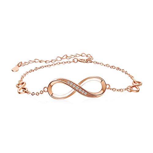 Infinito simbolo infinito oro rosa bracciale da donna in argento sterling 925 bracciale da donna in oro rosa con zirconi argento per donna donna ragazze, braccialetti regalo