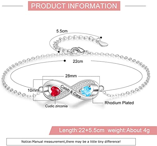 Infinity Bracciale Donna Personalizzato 2 Nome Bracciale 2 Cuori Birthstone Bracciale Bff Amicizia Bracciali Creativo Pasqua Festa della Mamma Compleanno Anniversario Sorelle Coppia Moglie Regalo