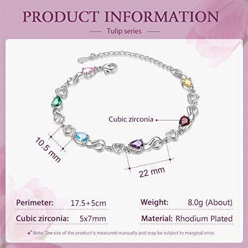 AYOU Infinity Bracciale Personalizzati Nomi Bracciale Infinity Cuore Birthstone Bracciale 4-6 Nomi Bff, Creativo San Valentino Compleanno Anniversario Regalo per Fidanzate Mamma Coppia Moglie (6)