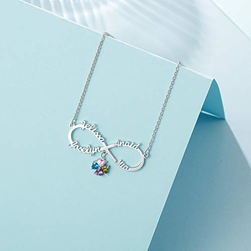 Lam Hub Fong Infinity Collana con 1~5 Nomi Personalizzata Collana in Argento 925 da Donna con Pietra Infinito Collana in 3 Colori Regalo per Moglie Madre Figlia Sorella Migliore Amica (4 nomi)