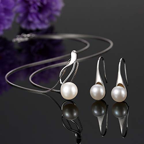 ♥ Massima qualità ♥ - Ciondolo e collana in metallo: argento Sterling 925 (con superficie placcata in oro bianco). Ciondolo, orecchini e collana sono realizzati con argento Sterling S925 della migliore qualità. La collana è lunga 45,7 cm, il diametro delle perle d'acqua dolce del ciondolo è da 8,5 a 9 mm e gli orecchini da 8,0 a 8,5 mm. Alta qualità e finitura lucida.