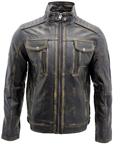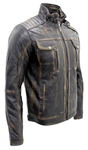 Infinity Giubbotto da Motociclista in Pelle Nera Classiche da Uomo 5XL