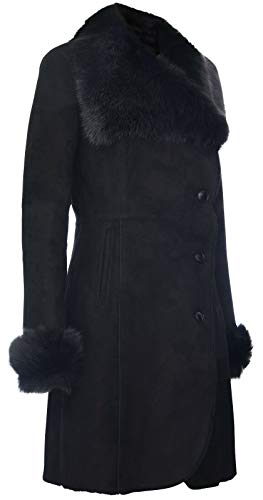 Infinity Leather Cappotto da Donna in Montone Scamosciato Merino Nero Caldo con Collo Toscano 3XL
