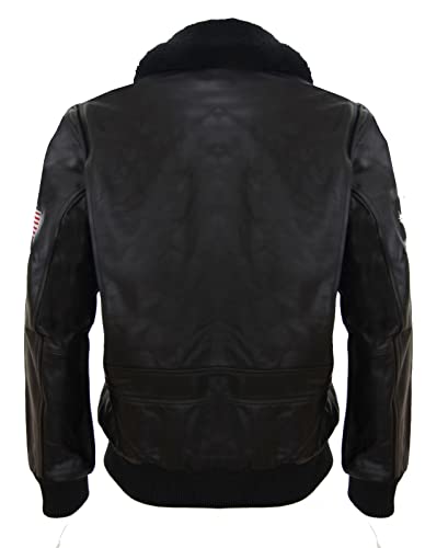 Infinity Leather Giacca Bomber da Uomo in Pelle Nera con Colletto in Sherpa Staccabile con Stemma A2 US Airforce S