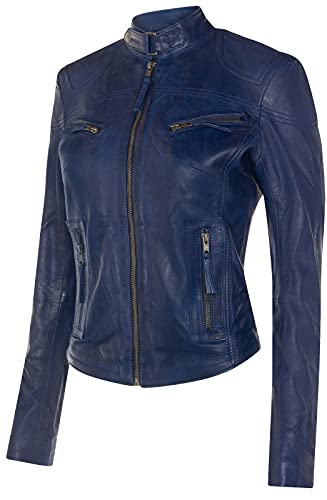 Infinity Leather Giacca Classica Blu da Donna in Vera Pelle Slim Fit da Motociclista L