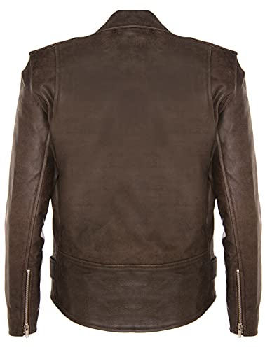 Infinity Leather Giacca da Motociclista da Uomo in Pelle Marrone Classico con Logo Brando 4XL