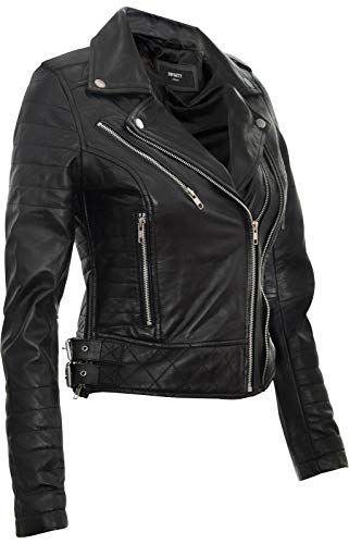 Infinity Leather Giacca Vintage da Donna in Pelle Nera, Trapuntata, in Stile Classico Chic Motociclista 5XL