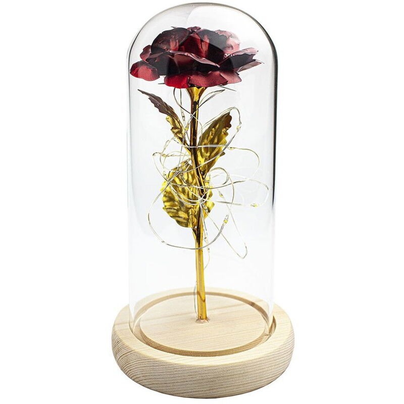 Esprimi il tuo amore per quella persona speciale con questa rosa infinita rossa con stelo dorato. La rosa poggia su una base di legno ed è racchiusa da una campana amovibile. Attorno alla rosa si avvolgono sottili luci a filo, che conferiranno alla stanza un'atmosfera accogliente. Ottimo da regalare per un matrimonio, fidanzamento, festa della mamma o San Valentino! - Rosa rossa con stelo dorato, all'interno di una campana - Una sottile scia di luce illumina la rosa - Adatto come regalo per un matrimonio, fidanzamento o San Valentino Specifiche: Colore rosso Materiale: vetro, legno Dimensioni: ca. 21 x 11 cm Batterie: 3x AAA (non incluse) La confezione contiene: 1 rosa dell'infinito