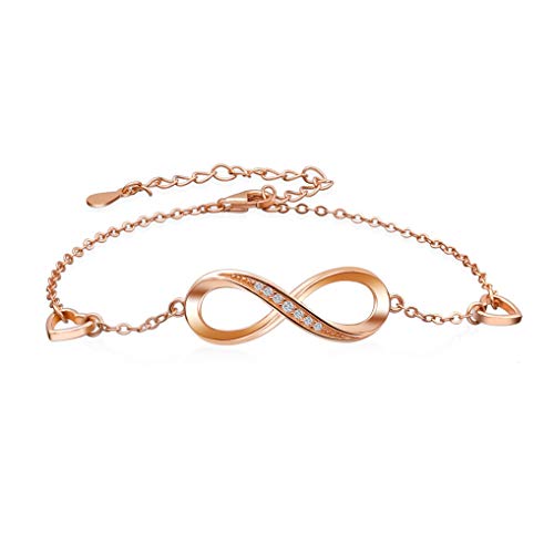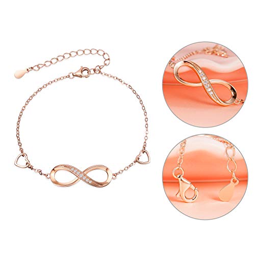 Infinity simbolo dell'infinito, oro rosa, bracciale da donna in argento Sterling 925, bracciale da donna in oro rosa, zirconi, argento per donne, ragazze, bracciali regalo per Natale, compleanno