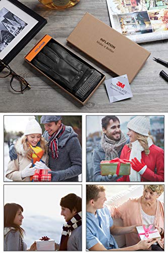 INFLATION Guanti da uomo in pelle d'agnello con schermo tattile caldo e foderati, confezione regalo