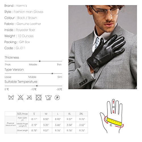 INFLATION Guanti Pelle Uomo inverno da genuina nappa pelle con foderata in peluche, schermo tattile/dattilografare/guidare disponibile, Marrone, L = 8,9 "