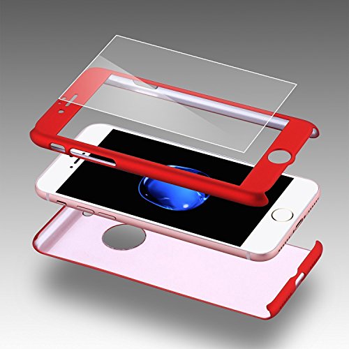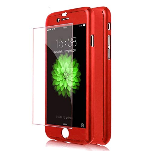 InfoPosit Custodia Grigia iPhone 6 6s 360 Gradi per Entrambi i visi + Vetro temperato, Custodia, Cover, Custodia, Custodia per iPhone 6 6s + Cavo Dati (Rosso)