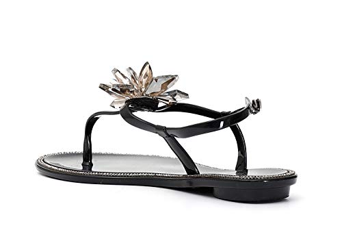 Infradito con fiore cristallo e suola contornata di strass Rosa 370