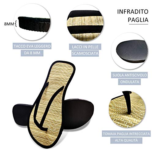 Infradito Paglia Uomo Donna Ciabatte Comode Caldo Estate Flip Flops Moda Pantofole Unisex-Adulto, Sandali Scarpe da Spiaggia e Piscina per Coppie,Nero,41