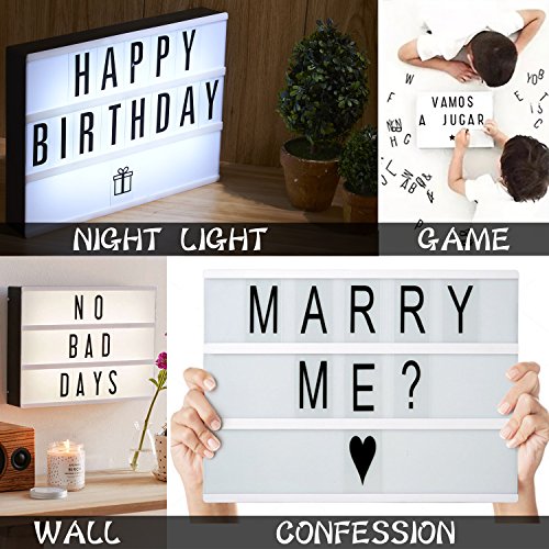 Infreecs LED Light Box, Scatole Luminose LED Light Box A4 Formato con 191 Lettere Nero, Numeri e Simboli, Luci Cinematografica Lampada Cinema Lavagna a 3 Righe Cinematic Lightbox