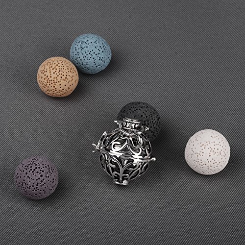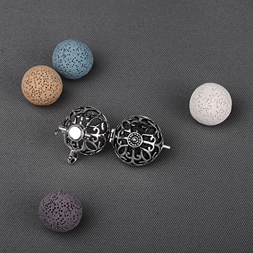 INFUSEU Aromaterapia Essenziale Olio Collana Fragranza Diffusore Classico Placcato Argento Malacca Profumo Medaglione Aroma Pendente con 5 Tinti Naturale Lava Roccia Pietra Perline e Catena 24"