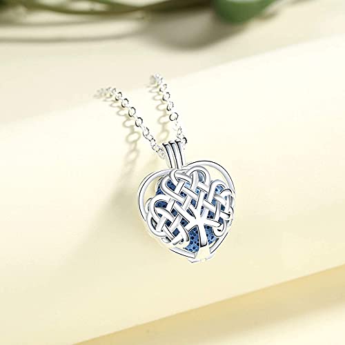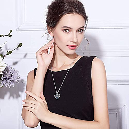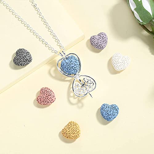 INFUSEU Collana Albero della Vita, Aromaterapia Diffusore di Oli Essenziali Ciondolo Celtico Placcato Argento Diffusore di Profumo del Cuore con 7PC Lava Pietre e Catena 24", Regali per Signora