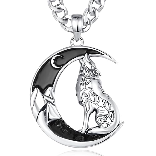 INFUSEU Collana Lupo Celtico, 925 Argento Sterling Ciondolo Luna Nodo Celtico Gioielli per Donne Ciondolo Spirito Amante Animale Talismano Gioielli Regali per Donne Lei