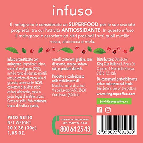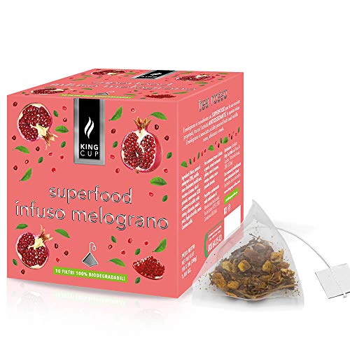 King Cup - Infuso di Melograno, 4 Confezioni con 10 Filtri Biodegradabili l'una, Miscela Dolce e Acre con Note di Mirtillo Rosso, Albicocca, Mela, Ibisco, Superfood 100% Naturale, 40 Filtri