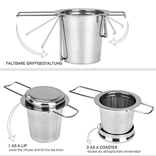 Infusore tè,Winzwon Infusore per Tisane con Coperchio,Colino per Tisane Acciaio Inossidabile 304,Design Dell'impugnatura Pieghevole Adatto per la Maggior Parte Delle Tazze da tè,Regalo Donna 2 Pezzi