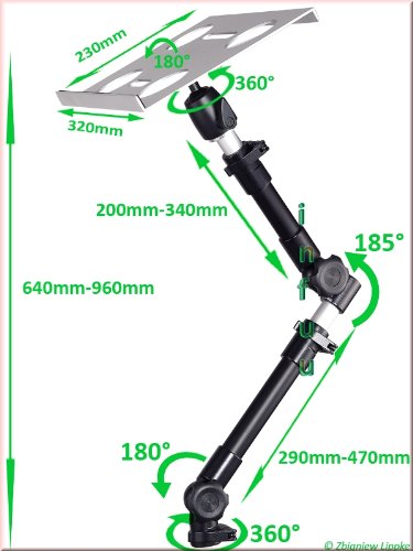 Altezza regolabile con due bracci telescopici da 60 cm fino a max. 96 cm