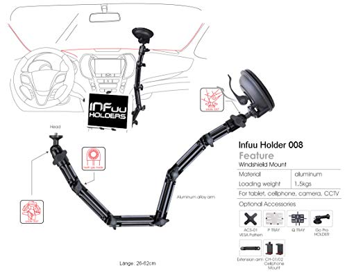 Infuu Holders - Supporto universale per auto a ventosa per iPad 1 2 3 4 Air Pro Galaxy Tab Note Nexus 10 Tablet PC 7 - 11 pollici 008