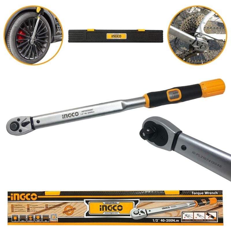 DESCRIZIONE: La chiave dinamometrica è una chiave di manovra a serraggio controllato usata per il serraggio di viti, dadi e bulloni al giusto valore di coppia. Le chiavi dinamometriche garantiscono un serraggio perfetto. DATI TECNICI: Dimensioni: 1/2" Lunghezza: 530 mm Intervallo di coppia: 40-200 Nm Tolleranza di coppia ±4% Materiale: CRV+CrMo Design semplice Regolazione della coppia Imballato in valigetta
