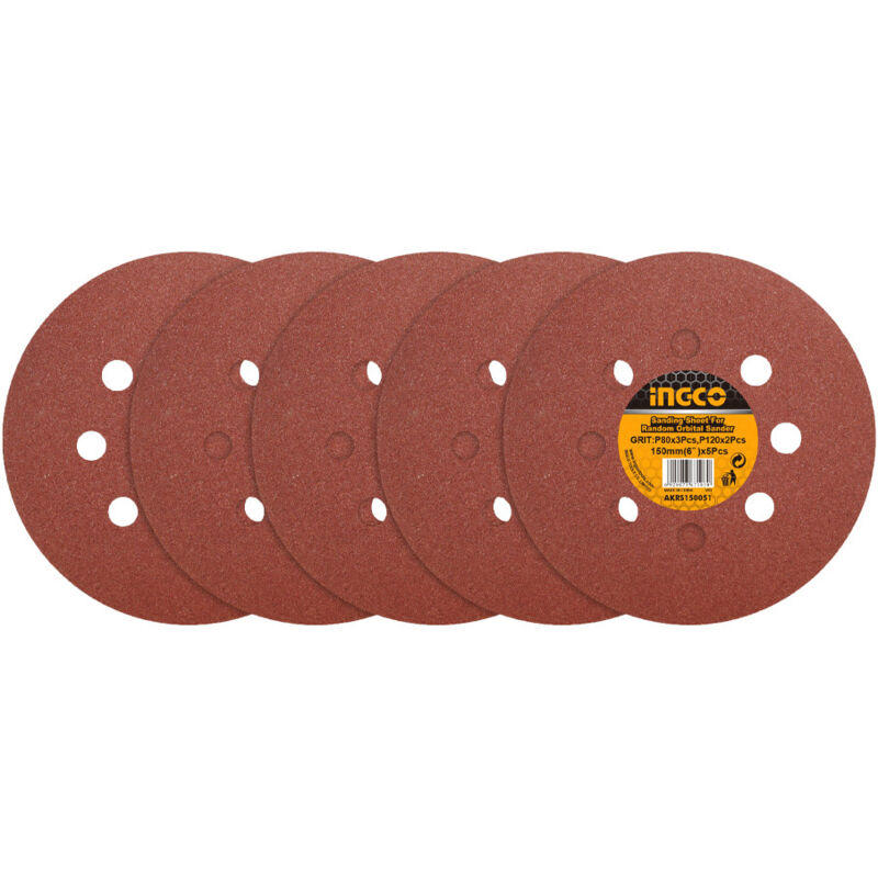 Ingco AKRS150051 sono dischi per carteggiatura di ottima fattura in set da 5 pezzi di cui 3 pezzi P80 e 2 pezzi P120. CARTA ABRASIVA PER LEVIGATRICE ORBITALE DIMENSIONI: 150 mm - diametro n. 3 PEZZI P80 N. 2 PEZZI P120 Perfette per la levigatrice Ingco RS4508