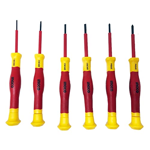 Ingco Hkipsd0601 Set Cacciaviti Di Precisione Isolati 6 Pz A Stella A Croce A Taglio Certificati 1000 V In Astuccio In Tessuto