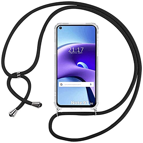 Ingen Custodia con Collana per Xiaomi Redmi Note 9T, Cover Trasparente con Cordino, Morbido Silicone TPU Bumper Shock Absorption Corner Cushion Protettiva Case per Samsung S21 Ultra - Nero