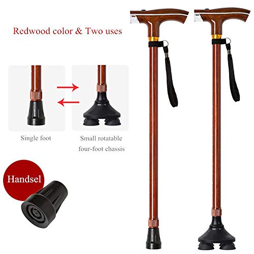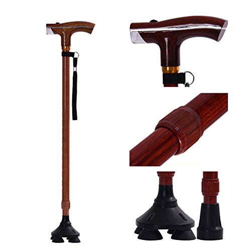 Ingeniously Bastone da Passeggio per Anziani, con Luce a LED, Regolabile, Pieghevole, Base Girevole, Supporto per Stick di bilanciamento Esterno per Anziani Uomini e Donne