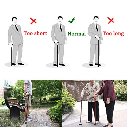 ❀Persona applicabile: il bastone può essere applicato a uomini e donne tra 150 cm (59 pollici) e 180 cm (70,8 pollici) che sono anziani o disabili per l'intervallo di regolazione dell'altezza del bastone da 59 cm (23,3 pollici) a 95 cm (37,4 pollici). E ci sono dieci fori per la regolazione. La portata massima è di 200 kg (440 libbre).