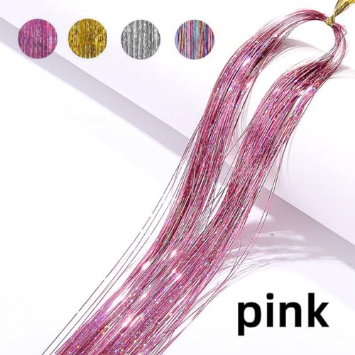 INGJIA 4Pcs Fili di Tinsel Capelli,Argento Fili Glitter Capelli,Fili Tinsel Capelli Lucido,Tinsel Hair Tinsel Capelli Cosplay Partito Forniture per Feste Adatto per Ragazze Femmine